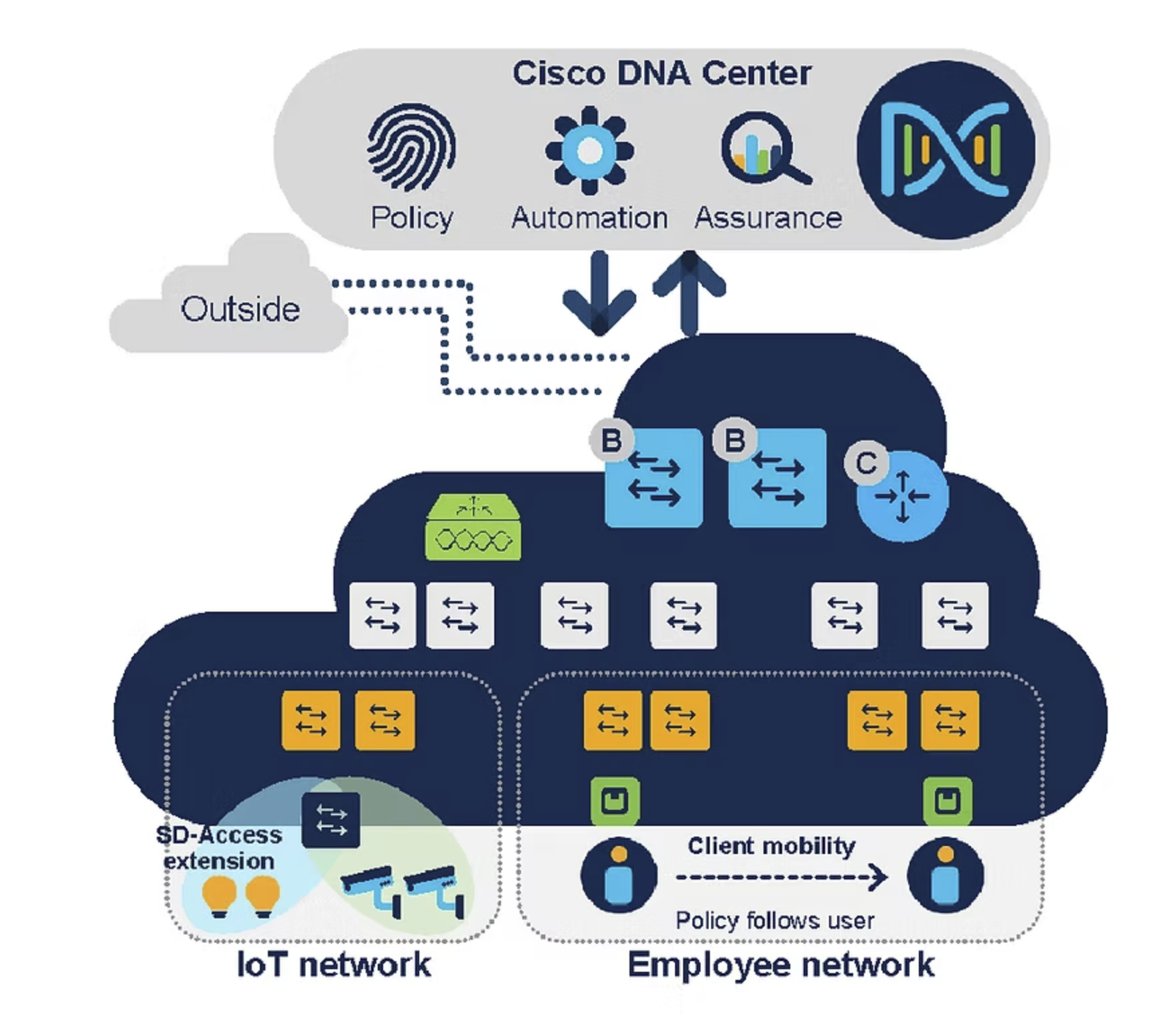 Modern network architecture with automation, segmentation, and enhanced security.